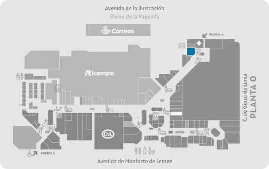 Nos encontramos en el Centro Comercial La Vaguada, una ubicación muy reconocida en el barrio del Pilar. Un entorno de fácil acceso, tanto en coche como en transporte público, que permite llegar de forma cómoda y rápida desde cualquier punto de la ciudad.